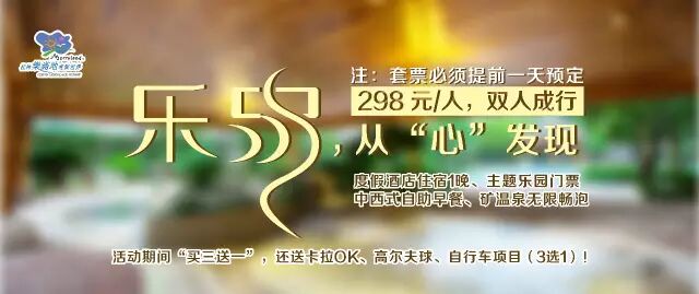 活动期间“买三送一”,还送卡拉OK、高尔夫球、自行车项目(3选1)哦!约上好友,来乐满地度假世界赏秋吧!