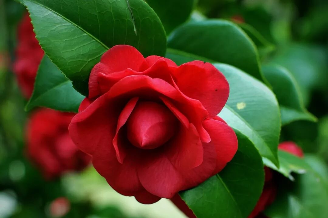 或艳丽如美人的烈焰红唇,或纯净如一抹无暇的白雪,浓绿的枝叶,映衬着娇美的花朵,将整个曼佗罗园区都装点成了茶花的天堂……