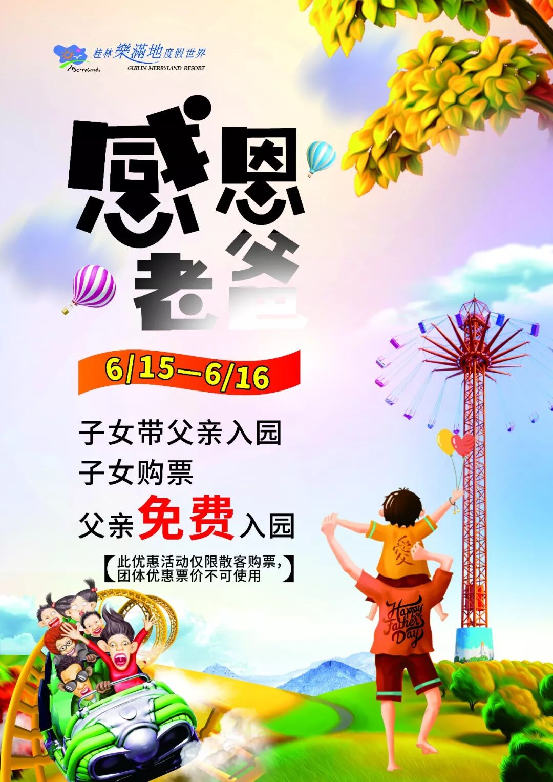 门票优惠:凡购买主题乐园门票一张的游客,其父亲可享受免费入园游玩;