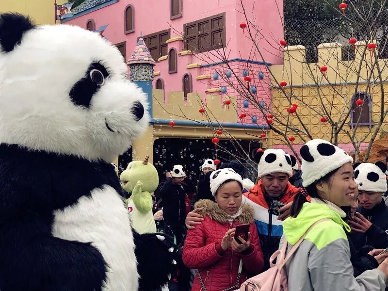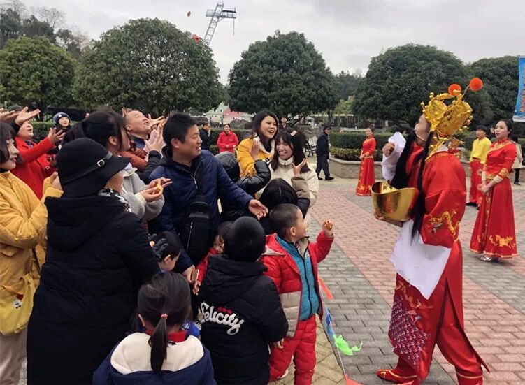 年味儿十足,传统开运鞭炮,迎春舞蹈,财神送金,整个乐园都洋溢着欢乐气氛
