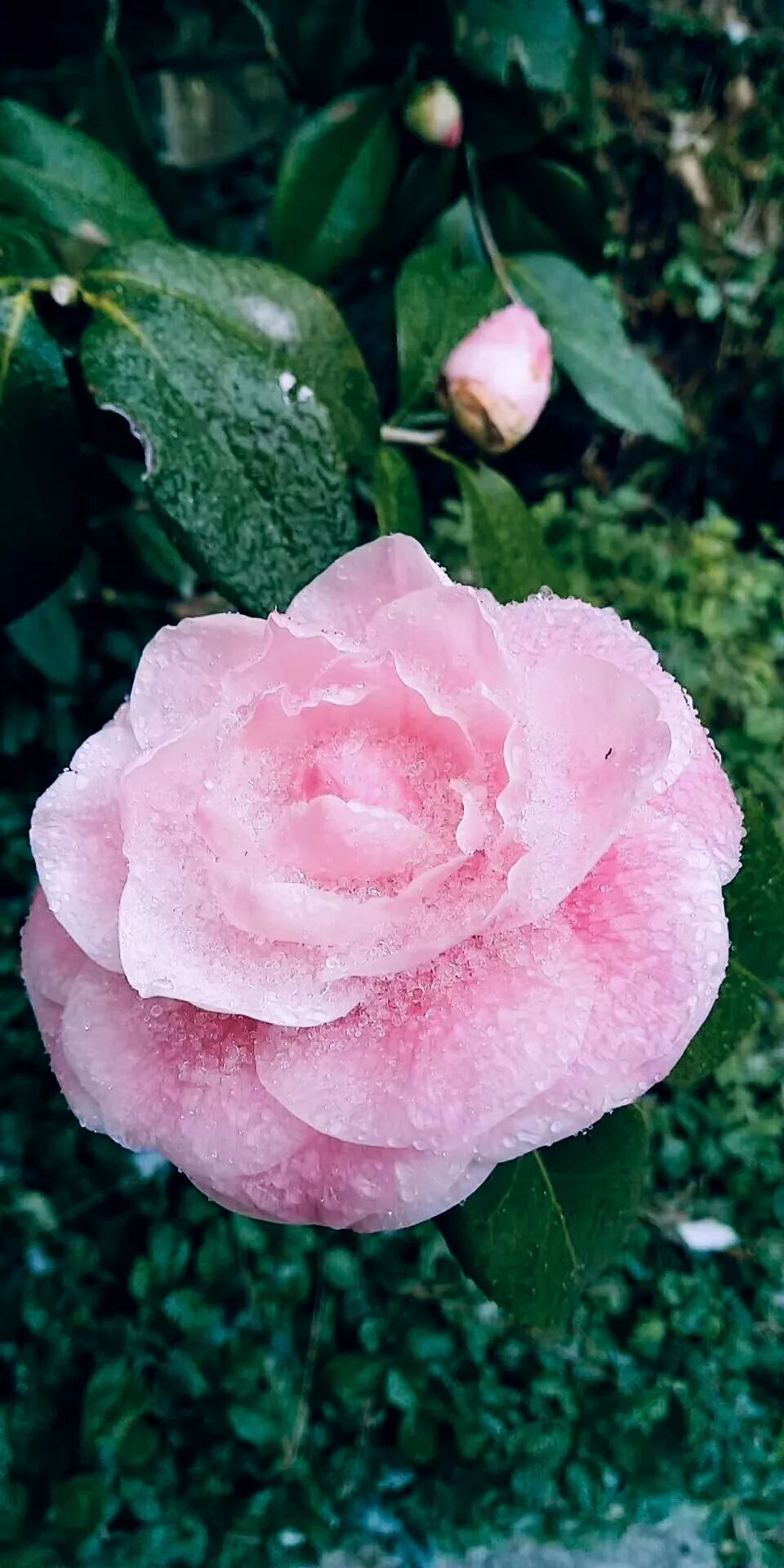 曼陀罗园里的茶花竞相开放,不畏严寒,傲然绽放。