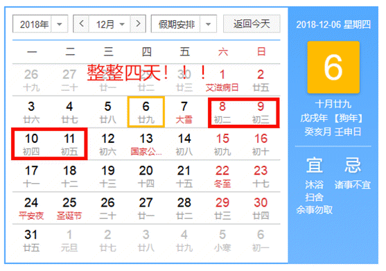 掐指一算,整整 4 天小假