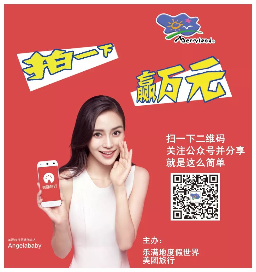 美团旅行携手乐满地举办 “拍一下,赢万元”快乐活动。将带有“乐满地”字样的美美视频,上传至“抖音”、“快手”、“QQ朋友圈”、“微信朋友圈”以上四个视频平台,您就可能赢取万元大奖。