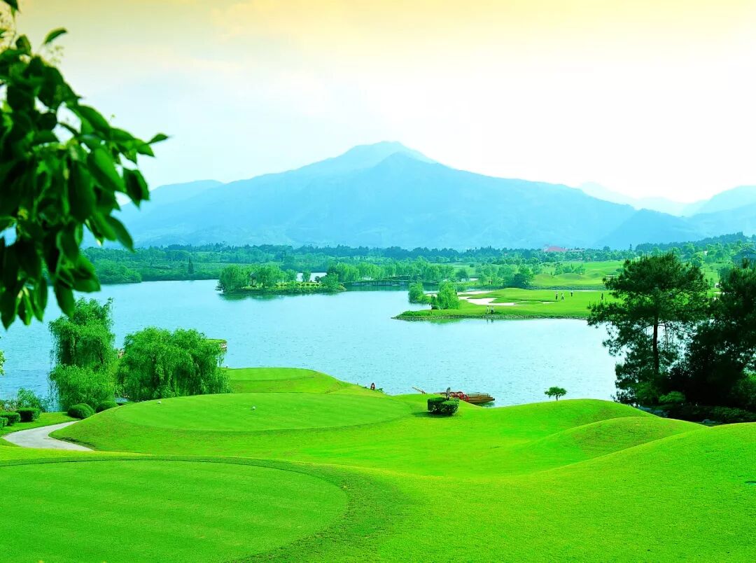 您可以清晰的看到乐满地高尔夫俱乐部“B场”风貌,自然的湖岸设计,依着灵湖的曲线,傍着远山融为一体,心向往之。