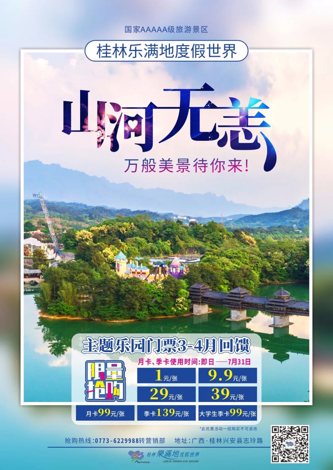 酒店+景区门票套餐挂牌价1180元/套,预售价590元/套!美团、携程、同程艺龙、驴妈妈、 去哪儿、乐满地公众号等美团、携程、同程艺龙网等OTA平台;大学生商城、爱就订、旅划算、直客通等合作渠道1、开园日起-2020年12月31日止,除国庆节(10.1-10.8)假期不使用外,其余时间任意一天使用。2、月卡使用时间:激活日起,一个月内有效,限7月1日之前必须激活,7月31日之前使用。3、季卡使用时间:激活日起,三个月内有效,限5月1日之前必须激活,7月31日之前使用。4、以上产品均须提前一天预订,实名制预订电子票。抢购、预售产品不支持退订。来来来,让小乐给大家总结一下,就是3月6日0点开始,1元,9.9元,29元,39元门票开抢!使用时间除了国庆假期哪一天都可以!又到拼手速的时候了,小乐的弟弟都已经摩拳擦掌了hh~当然,低价格门票毕竟限量,抢不到我们还有特惠月卡季卡大学生季卡呢,也是很划算的喔~