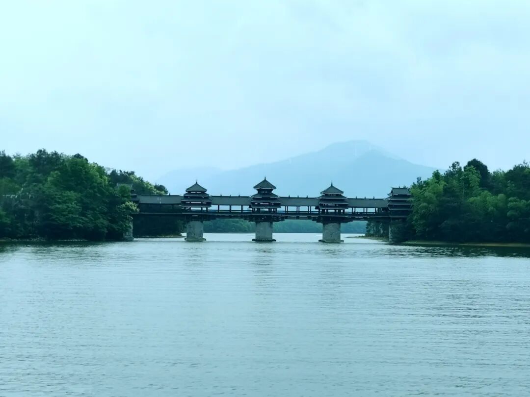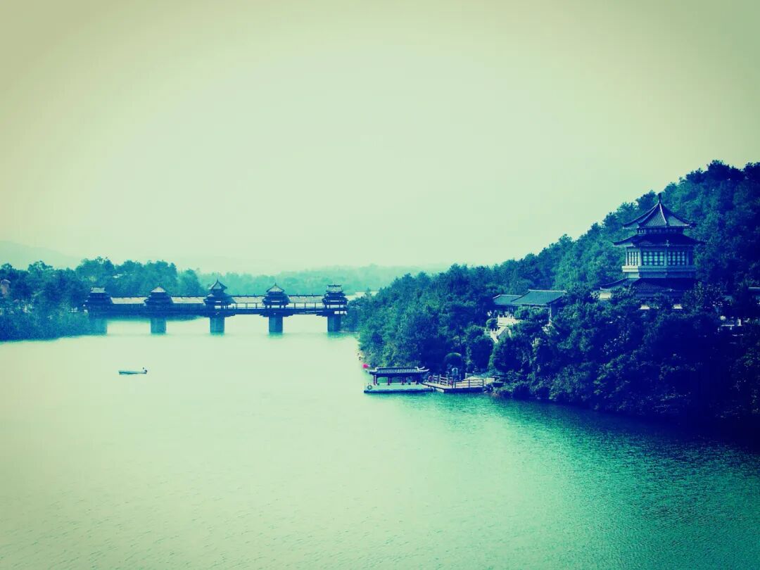 灵湖上的“风雨桥”悠然矗立,带着母亲漫步于此,你的爱意,就像湖面的清风,温暖母亲慈祥的面容。