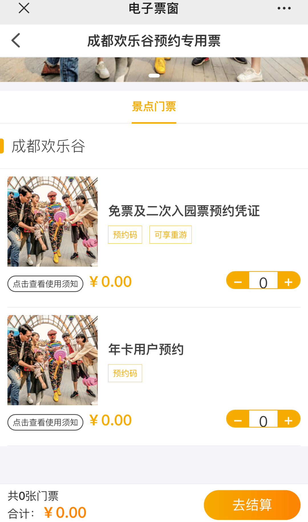2、此预约票仅作为游客预约当天出游凭证,不作为成都欢乐谷入园凭证,入园时请提前出示本人预约身份证原件及年卡,工作人员核验无误后方可前往检票口验票入园。