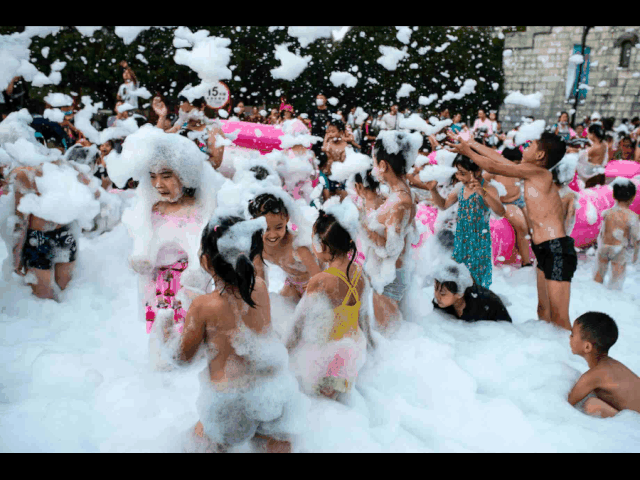 孩子的欢乐,都写在脸上,也表现在肢体上。要我说,这个泳池的泡泡,应该是最受孩子喜爱了。迎着风,漫天飞舞,印证那句:儿童急走追泡沫,跃入雪中无处寻!