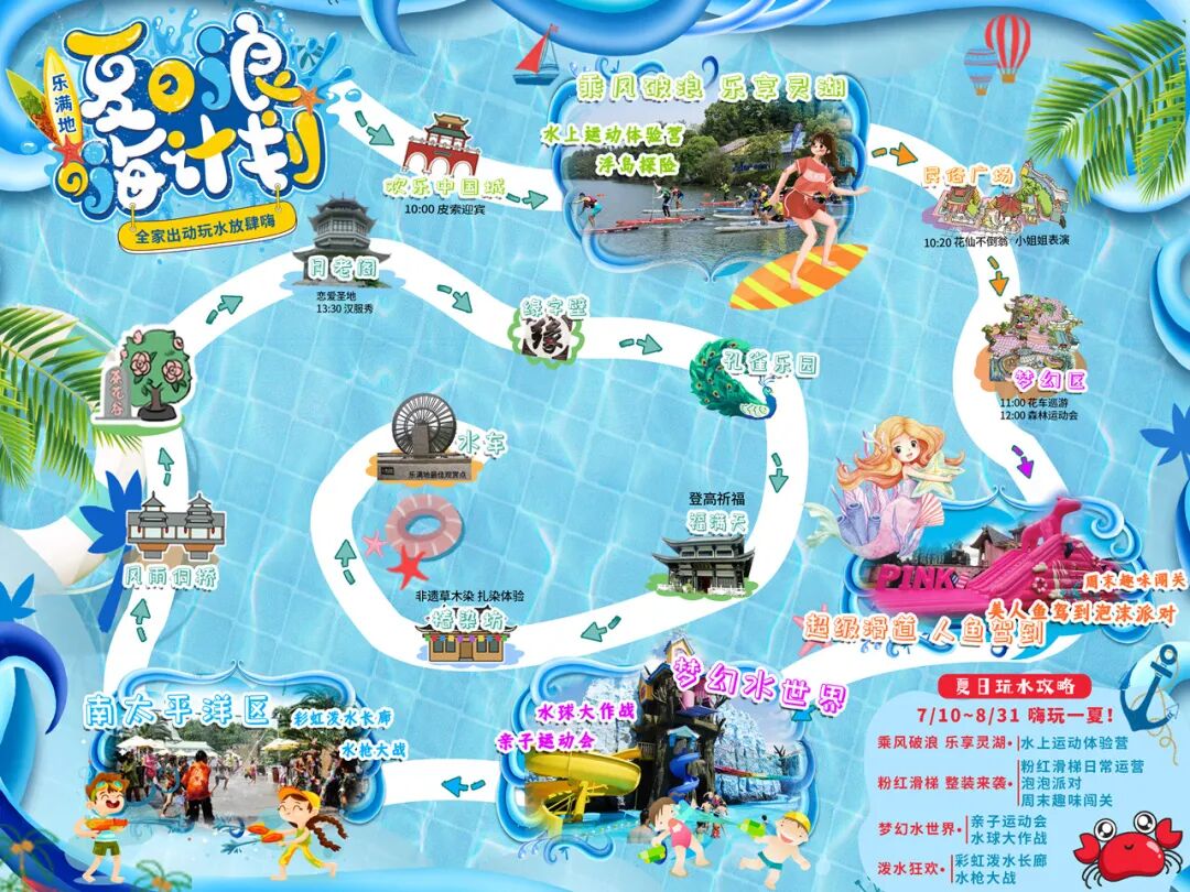 乐满地主题乐园,园区辟有欢乐中国城、美国西部区、梦幻世界区、海盗村、南太平洋区,欧洲区、曼佗罗园等特色景观区。各游乐区的建筑、游乐设施、商品餐饮等都具有鲜明的主题特色,同时各区均设丰富的表演节目。整个园区可观、可闻、可游、可赏、可疯狂、可闲....能够为到桂游客提供完善、多样的游乐选择。正值盛夏,乐园丰富的水乐游玩,让你浪嗨一夏!