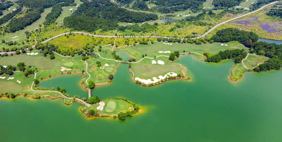 B场以湖景为主的山谷型球道。球道均沿着自然的湖岸设计,拥有丰富的水域障碍,为球友提供了一个挑战自我的挥杆场所;